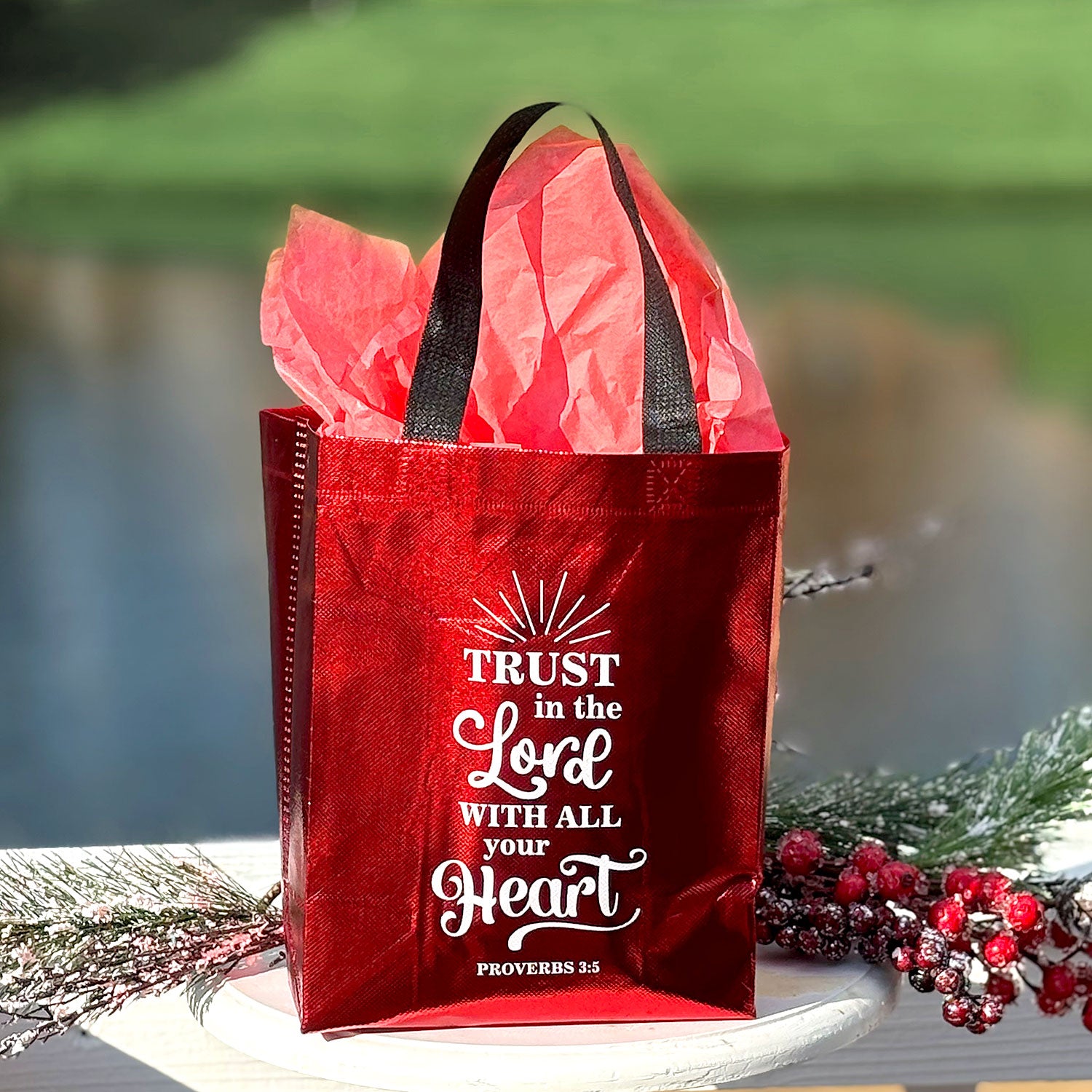 DeeLuxe Christian Gift Bag - Red - Proverbs 3:15
