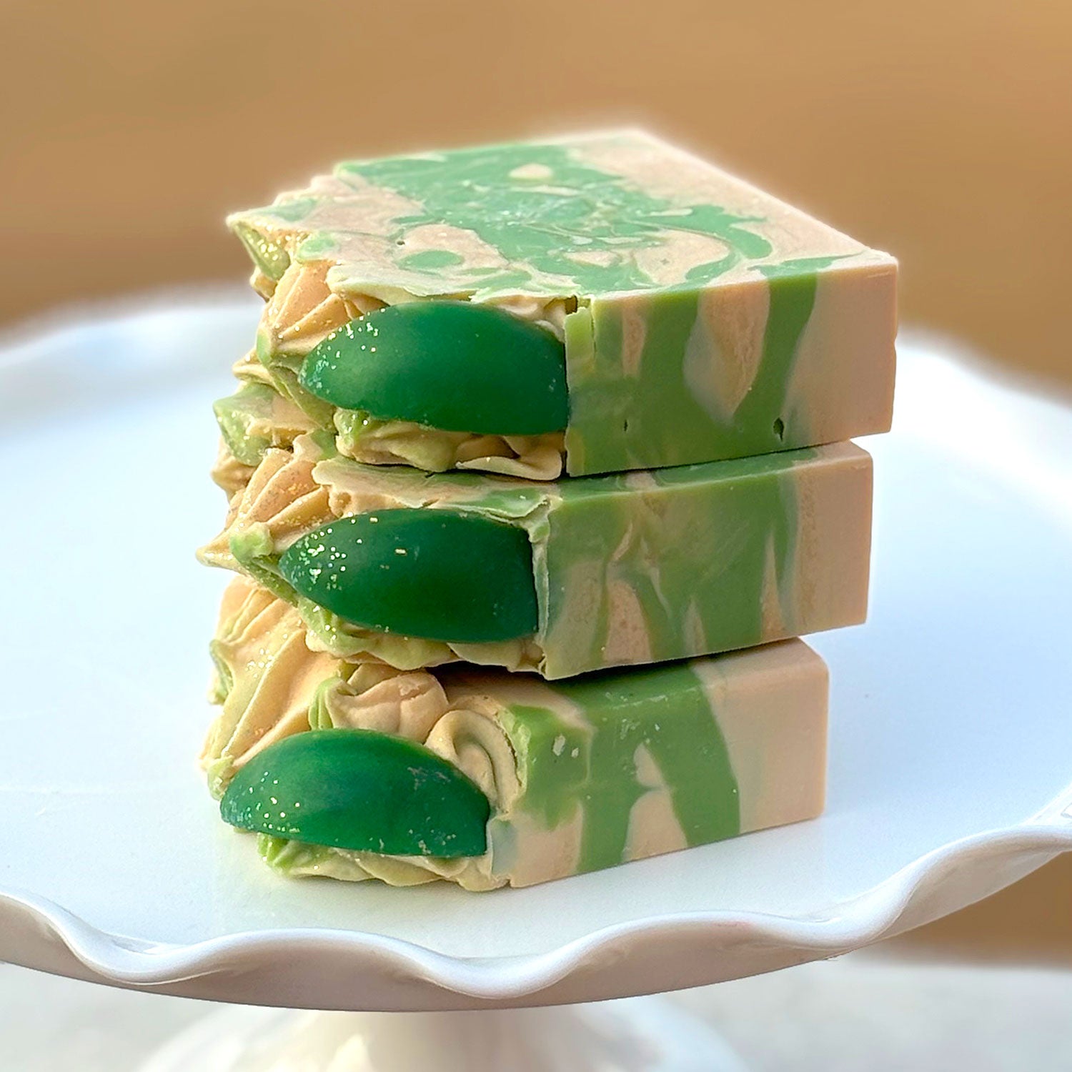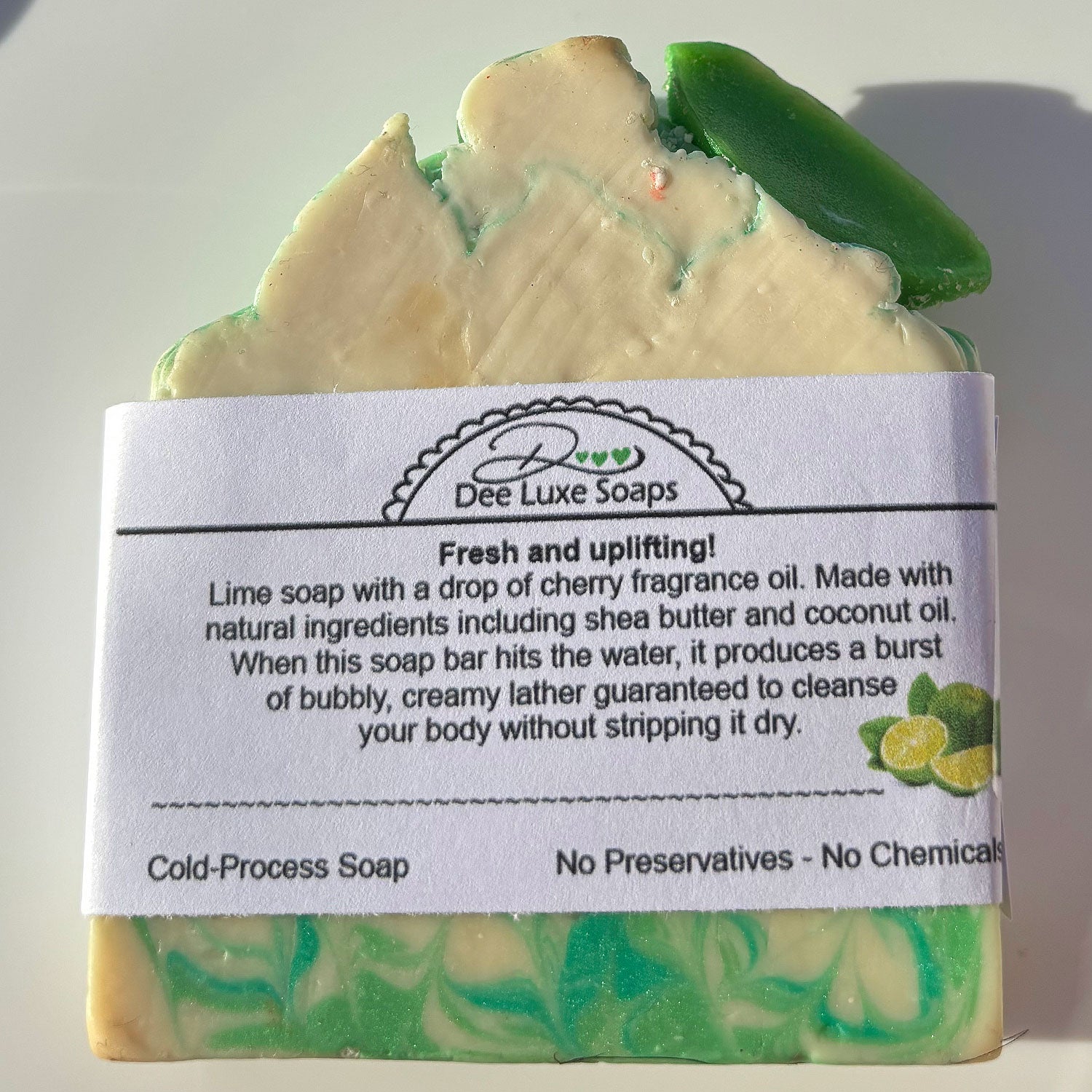 Treat yourself to the citrus fragrance of lime with a touch of cherry. This delicious looking soap bar is freshly made with the best natural ingredients which includes shea butter and cocoa nut oil. When this soap bar hits the water, POW! Your body will be covered with a bubbly, creamy lather that your skin is going to love!